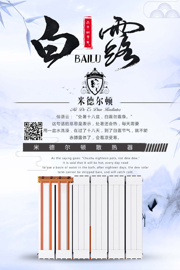 蒹葭蒼蒼,白露為霜。所謂伊人,在水一方。2020年9月7日庚子年七月二十,迎來(lái)二十四節(jié)氣中的第十五個(gè)節(jié)氣——白露。白露往后,氣候漸漸轉(zhuǎn)涼,這個(gè)時(shí)候裝置暖氣片是明…