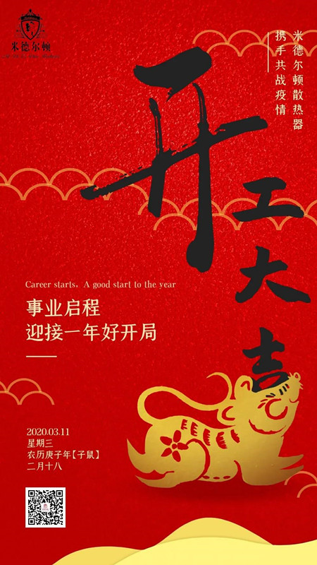 新年伊始,萬象更新 送走了一年的辛勞與忙碌 我們以嶄新的面貌迎來開工的第一天 農(nóng)歷二月十八 米德爾頓全體員工恭祝大家 開工大吉 新年新氣象